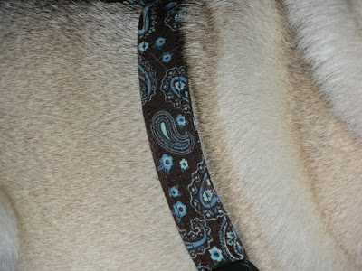 It's not really a tie. It's a harness, with matching leash. Aren't I one snazzy pug?