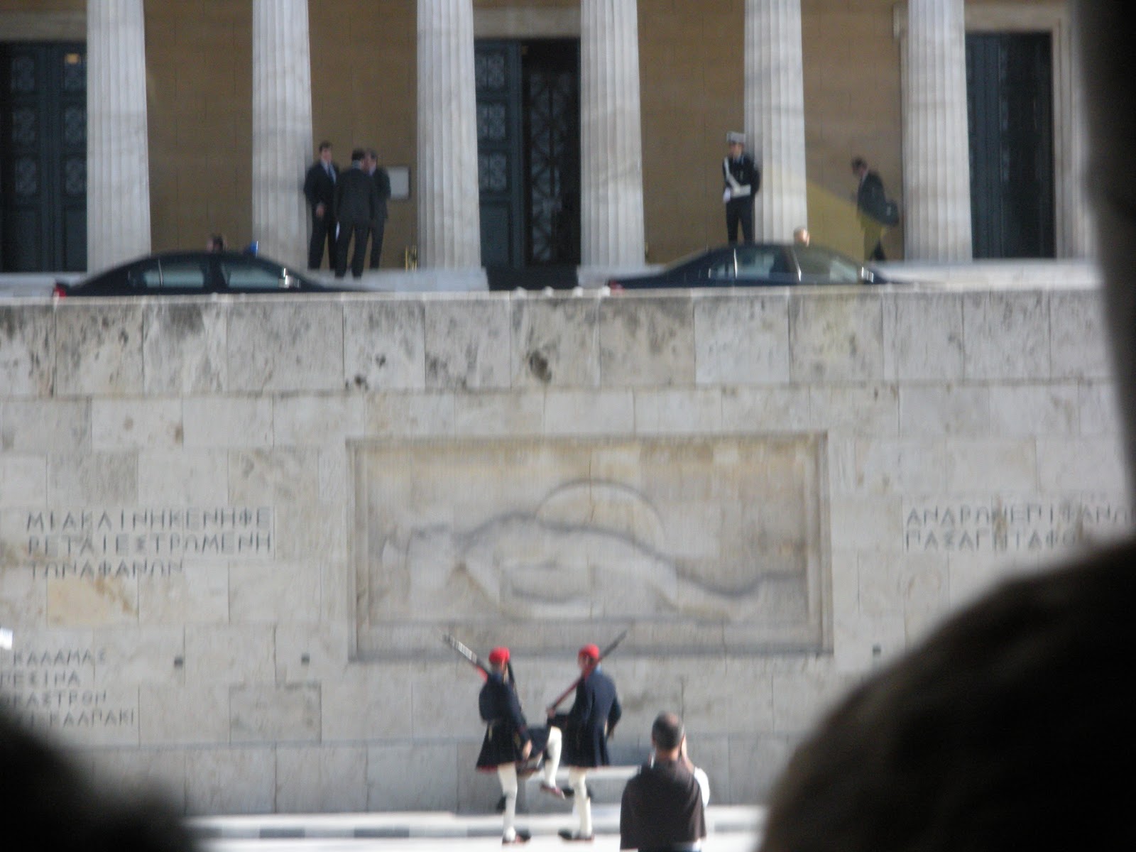 Return bus ride through downtown Athens took us past the house of parliament where we were lucky enough to see the changing of the guards of the memorial to unknown soldiers as we passed by.